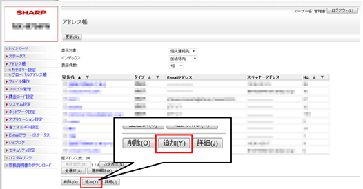 ③「アドレス帳」が表示されますので、[追加(Y)]を押してください。