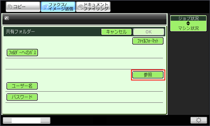 ⑤「共有フォルダー」画面が表示されますので、[参照]を押してください。