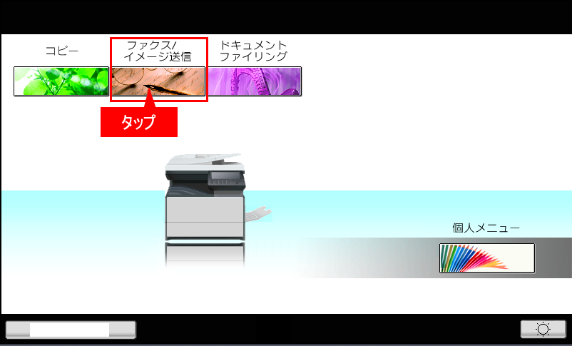 ②ホーム画面の[ファクス/イメージ送信]を押してください。