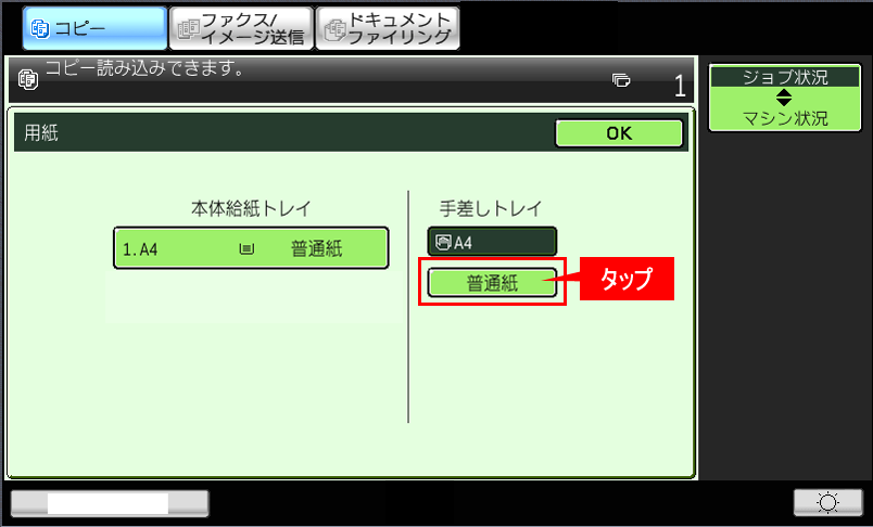 ④手差しトレイの[用紙タイプ](例:普通紙)を押してください。