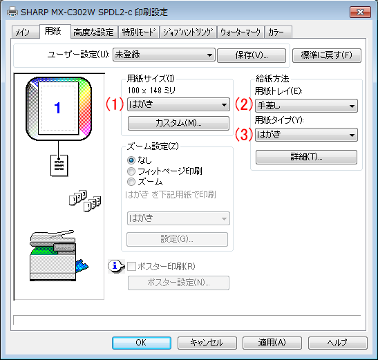 はがき※1を印刷する場合は、下記手順に従い、操作を行ってください。