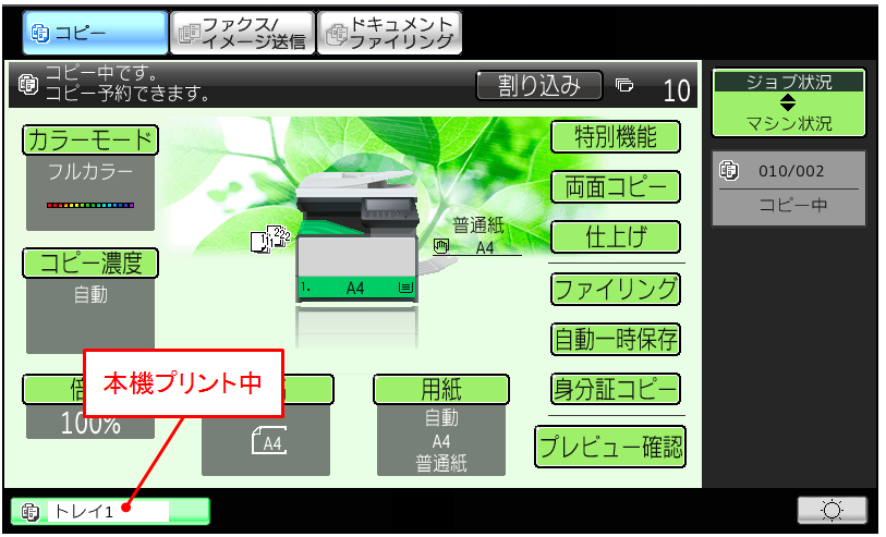 ※割り込みコピーのプリントが完了後、中断していたプリントが再開されます。