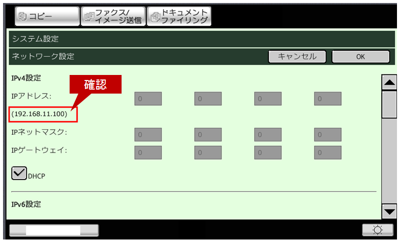 本ページでは、複合機のIPアドレスの確認方法と、ネットワーク接続が確立できているか確認する方法をご紹介します。