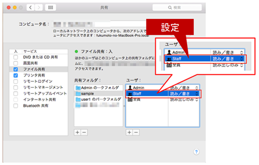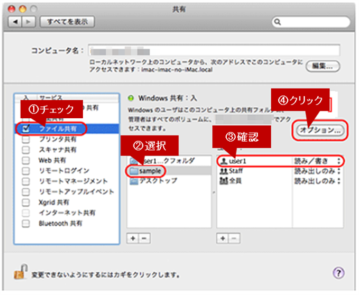 ※ 共有フォルダーの設定はMac OS X側の操作になります。