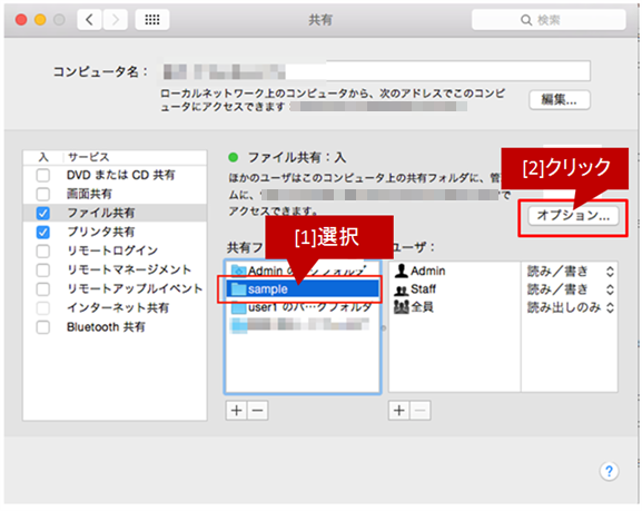 1. Mac OS X側に共有フォルダーを作成する-Mac OS X 10.8、10.9、10.10、10.11、10.12、10.13の場合