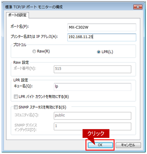 ⑦[OK]を押して、「当該プリンターのプロパティ」画面を閉じてください。