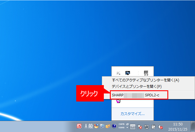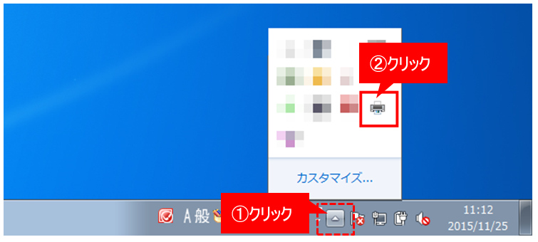 ①タスクバーの右側にある△を押し、プリンターのアイコンを右クリックしてください。