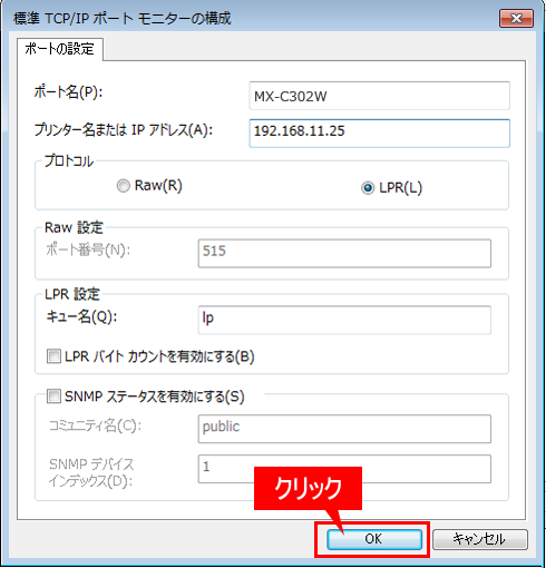 ⑦[OK]を押して、「当該プリンターのプロパティ」画面を閉じてください。