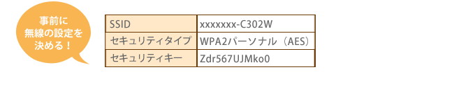 ① | SSID | 例)xxxxxxx-C302W | |