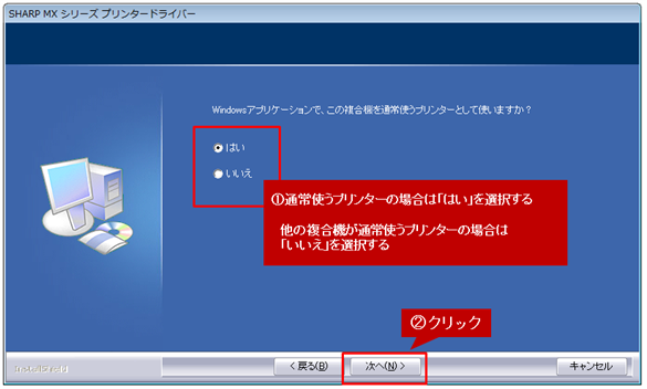 他の複合機が通常使うプリンターの場合は、「いいえ」を選択してください。