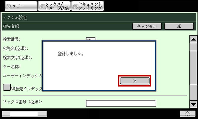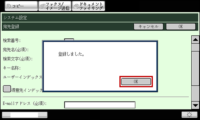 ⑦ 「登録しました。」と表示されますので、[OK]を押してください。