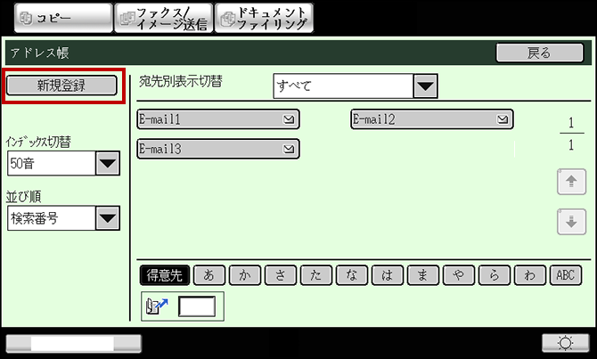 ④ 「アドレス帳」画面で、[新規登録]を押してください。