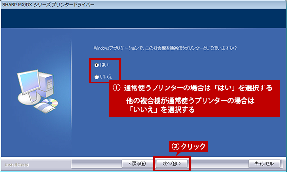 他の複合機が通常使うプリンターの場合は、「いいえ」を選択してください。
