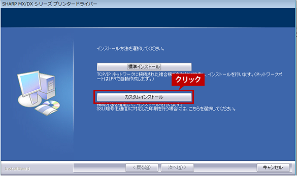 [カスタムインストール]ボタンをクリックします。