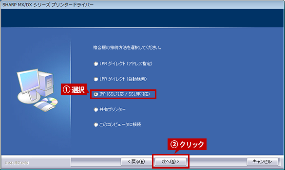 「IPP(SSL対応 / SSL非対応)」を選択し、[次へ]ボタンをクリックします。
