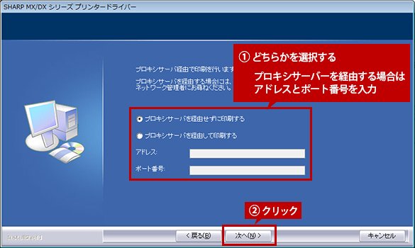プロキシを設定し、[次へ]ボタンをクリックします。