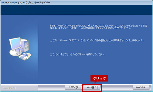 - ●プリンタードライバーに問題はありませんので、インストールを続行するボタンを選択してください。
