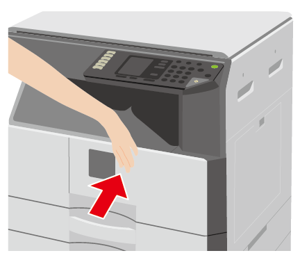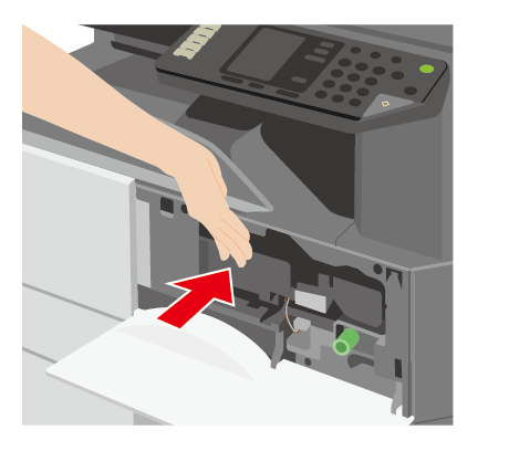 ⑤新しいトナーカートリッジを水平にゆっくりと挿入し、ロックがかかるところまで確実に押し込みます。「カチッ」と音がするまで押し込んでください。