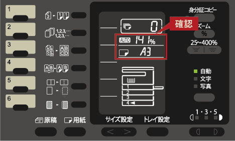 ⑥出力サイズ(例:トレイ4)を選択しましたら、[ズーム]を押してください。