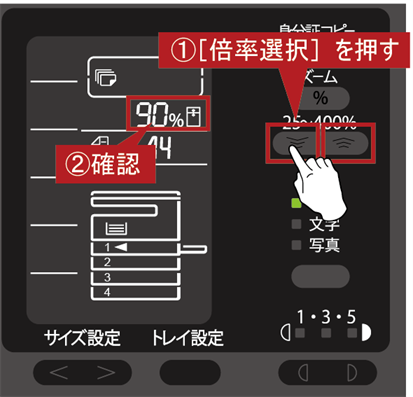 ③倍率表示部に縦方向の倍率が表示されますので、[倍率選択]を押して「倍率(例:90%)」を設定してください。