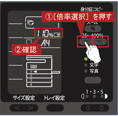⑤倍率表示部に横方向の倍率が表示されますので、[倍率選択]を押して「倍率(例:110%)」を設定してください。