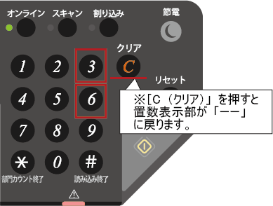 ③置数表示部でプログラムコードが「36」になっていることを確認し、[スタート]を押して確定してください。