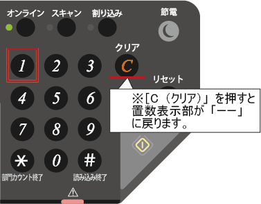 ⑤[テンキー]で任意の選択コード(例:1)を入力してください。