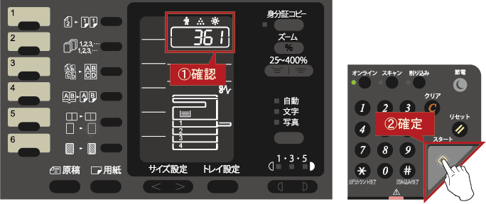 ⑥2桁目の選択コード(例:1)を確認し、[スタート]を押して確定してください。