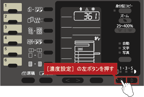 ⑦[濃度設定]の左ボタンを押して、設定モードから抜けてください。