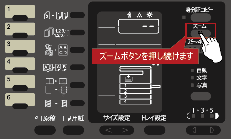 ②設定モードになりましたら、[ズーム]をしばらく押し続けてください。
