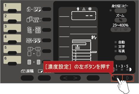 ①[濃度設定]の左ボタンを5秒ほど長押ししてください。