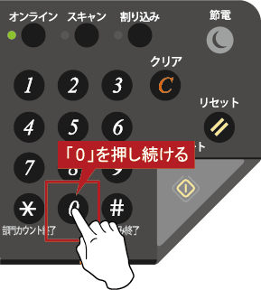 操作パネルのテンキーの「0」を押し続けると、総出力枚数が表示されます。