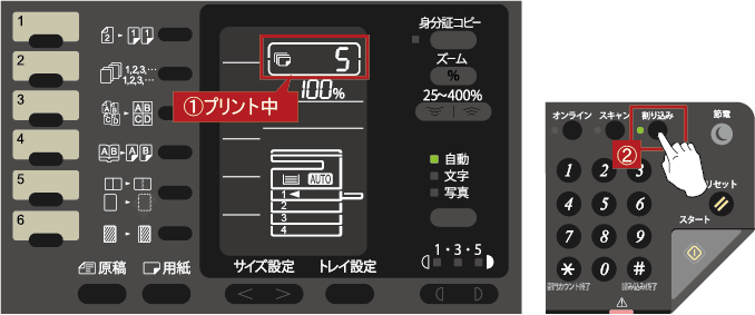 プリント中に[割り込み]を押すと、簡単に割り込みコピーができます。