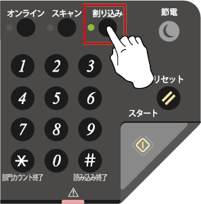 ⑤割り込みコピーが終わりましたら、[割り込み]を押して割り込みモードを終了してください。