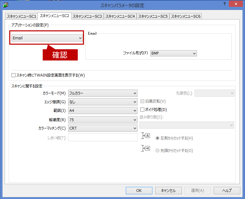 ※ここでは、操作パネルの「送信2」ボタンに-スキャンした文書をE-mailで送信する-を割り当てた場合を記載しております。