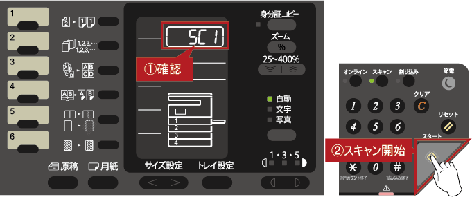 ④置数表示部に「SC1」と表示されましたら、[スタート]を押してください。