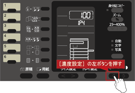 ①[濃度設定]の左ボタンを5秒ほど長押ししてください。