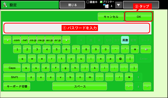パスワードを入力後、[OK]をタップします。