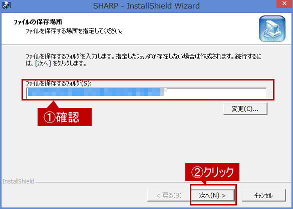 ファイルの保存場所を確認し、[次へ]ボタンをクリックします。