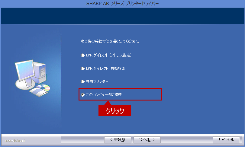 「このコンピュータに接続」を選択し、[次へ]ボタンをクリックします。