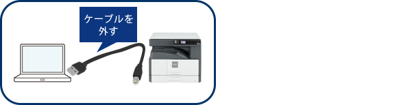 インストールが完了したら、パソコンと複合機をケーブルで接続します。