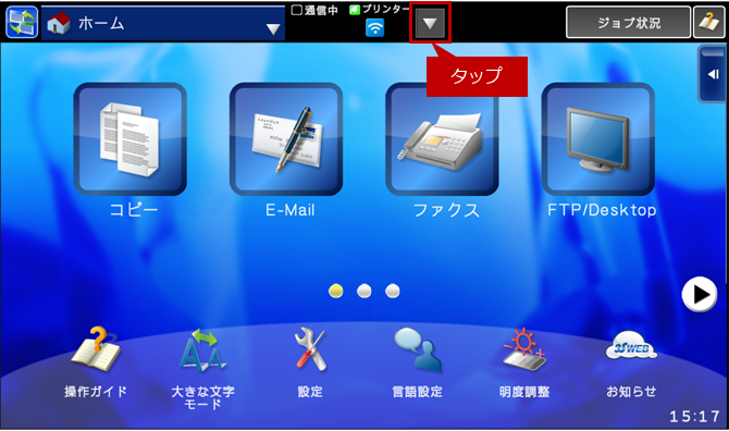2.モード切替後、無線LANアイコンの右横の[▽]キーをタップしてください。