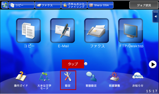 1.ホーム画面で[設定]をタップしてください。