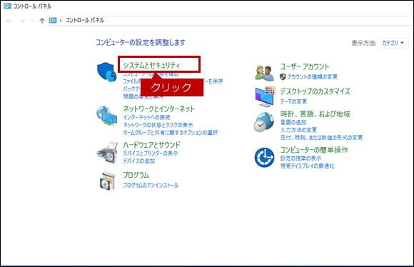 2. 「コントロールパネル」画面が表示されますので、[システムセキュリティ]をクリックしてください。
