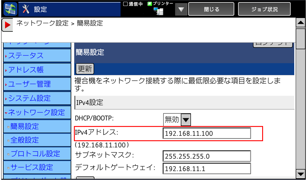 複合機のIPアドレスを変更したい。(FAQ No.01241)