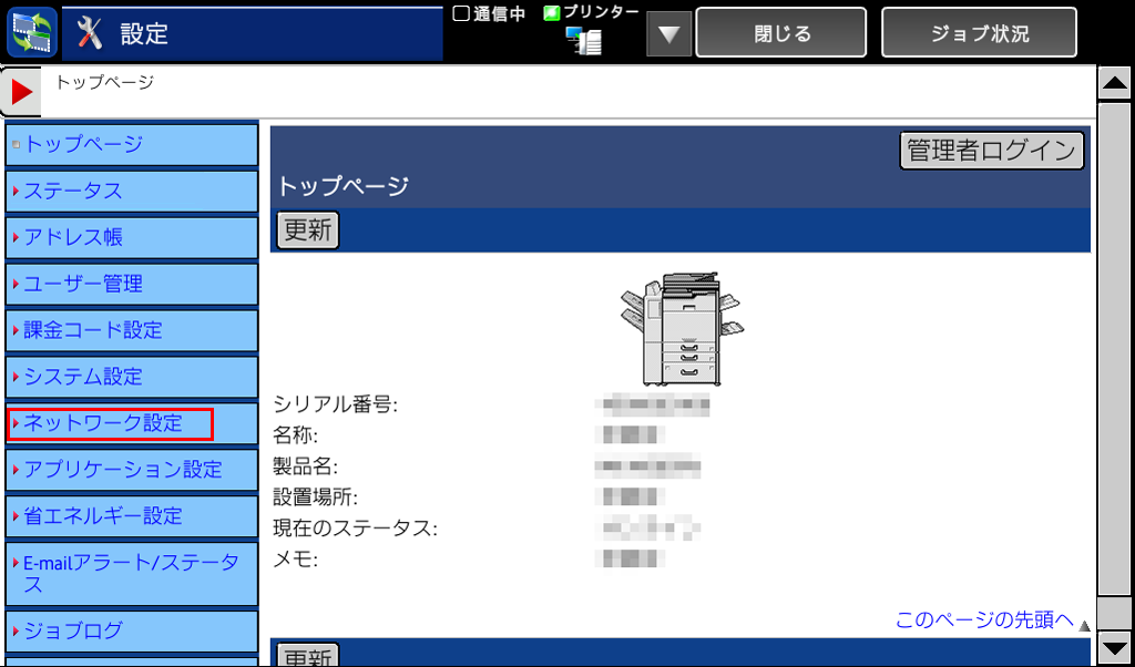 ② 以下のページが表示されたら複合機と接続できています。