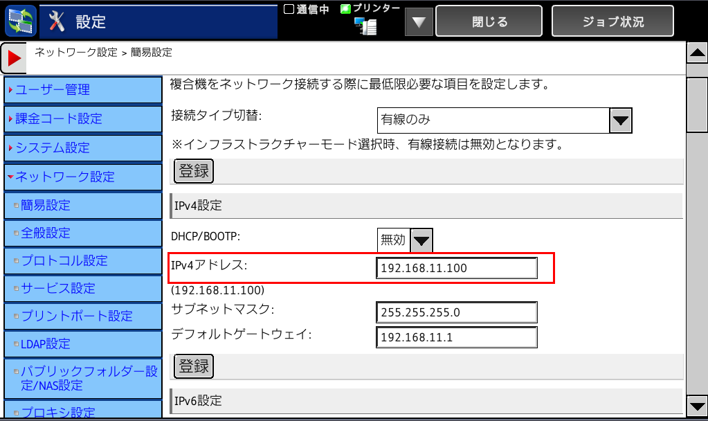 複合機のIPアドレスを変更する方法