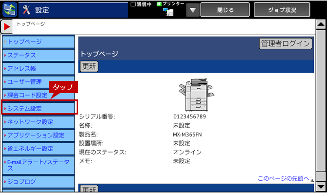 ログイン画面が表示されますので、管理者パスワードを入力しログインしてください。