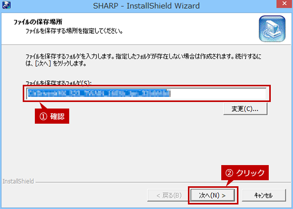 ファイルを保存するフォルダーを確認し、[次へ]ボタンをクリックします。