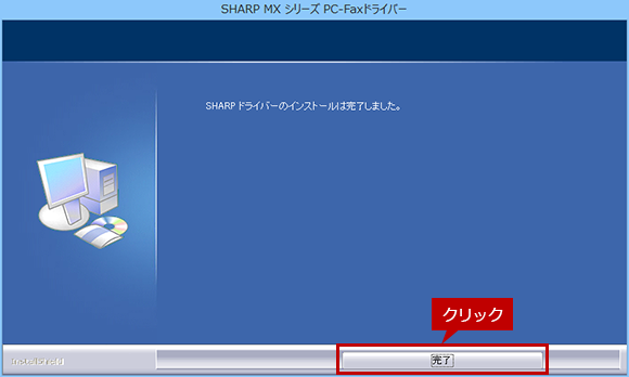 インストールの完了画面が表示されたら、[完了]ボタンをクリックしてください。